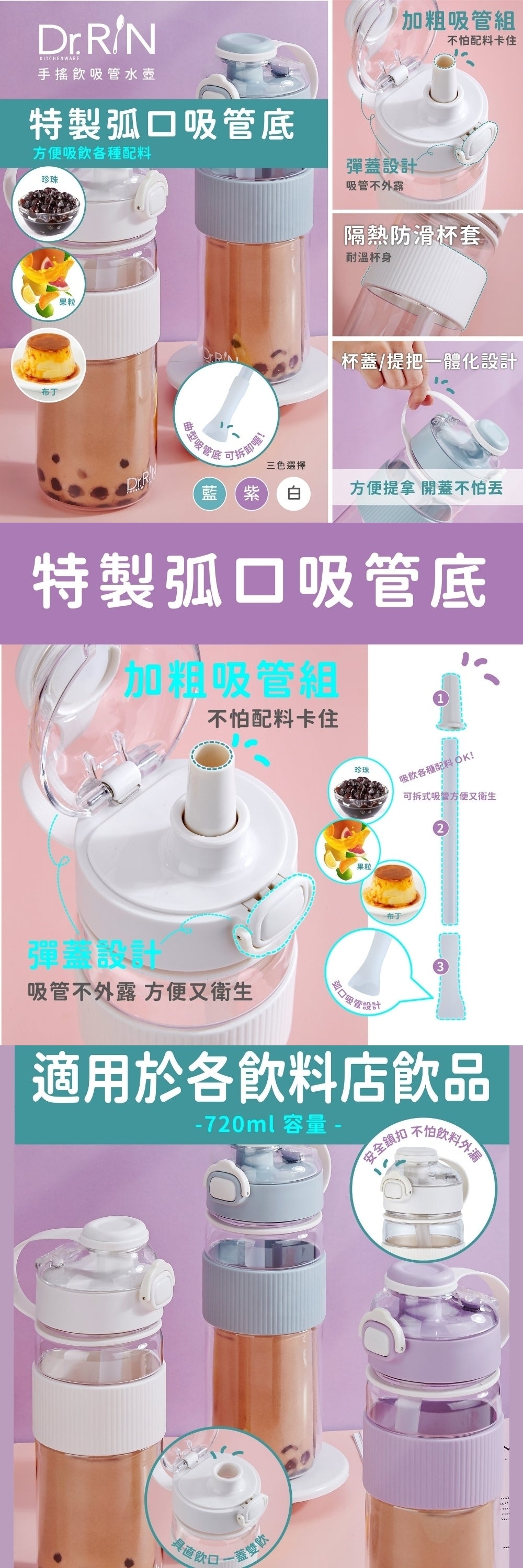 Dr.RIN手搖飲吸管水壺720ml